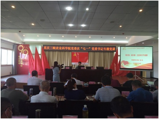 大会在激扬的《没有共产党就没有新中国》合唱中拉开帷幕,参会党员集体重温入党誓词,再次感悟共产党人的初心和使命。通报表彰1个先进党支部、8名优秀共产党员、4名优秀党务工作者并颁奖。院党委书记、院长杨梅以《观大势、谋大事,立足本行干成事》为题给全体参会人员讲了一堂有政治高度、理论深度及实践要求的专题党课。党课分别从“领会精神,把中央部署放在心上”、“贯彻要求,把区委决定落到实处”、“研判形势,把两化任务扛在肩上”三个方面,对全国两会和区委五届七次全会精神进行了全面、细致、深入的解读,并结合万州“一心六型”两化目标任务,号召全体党员和干部职工明确职责、锁定目标、振奋精神将农业科技支撑产业兴旺做细做实。