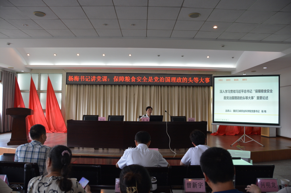 会上,杨梅书记还讲了题为“保障粮食安全是治国理政的头等大事”的专题党课,纪委书记李华成就全院师德集中学习教育工作进行了布置。