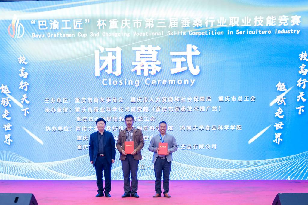 2020年10月23日,由重庆市商务委员会、重庆市人力资源和社会保障局、重庆市总工会主办,重庆市蚕业科学技术研究院承办的“巴渝工匠”杯重庆市第三届蚕桑行业职业技能竞赛在重庆市蚕业科学技术研究院举行。继前两届竞赛取得好成绩后,我院派出的蚕业技工团队再次获得佳绩。