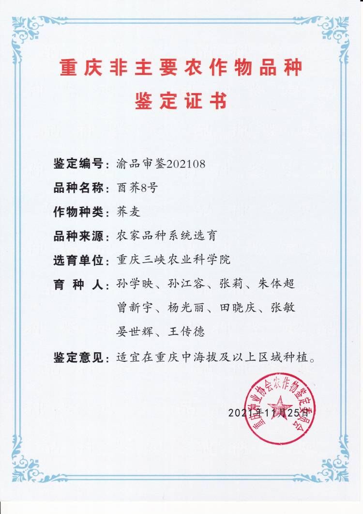 betway西汉姆联荞麦新品种酉荞8号通过重庆市鉴定