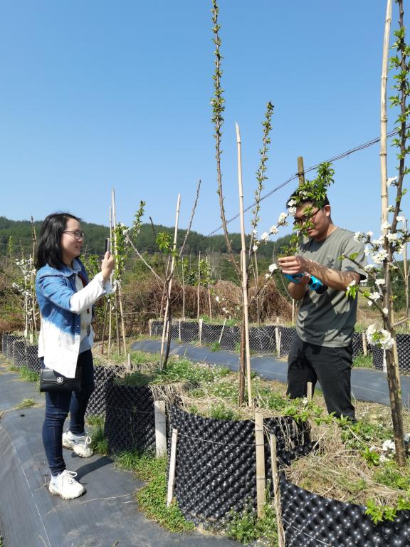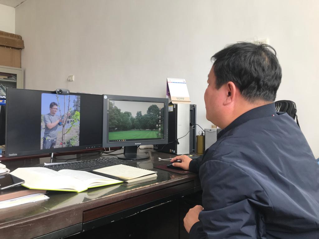 在全天视频交流中,孙玉刚研究员和魏国芹博士根据不同品种枝芽特性及生长势,详细讲解了不同品种留芽个数及位置,留枝长度和角度,让我们顺利完成了500株甜樱桃修剪。此次视频交流,效果很好,而且较之实地交流具更及时的优点,双方对修剪后的树型很满意,均表示以后可以多通过这种方式进行技术交流。