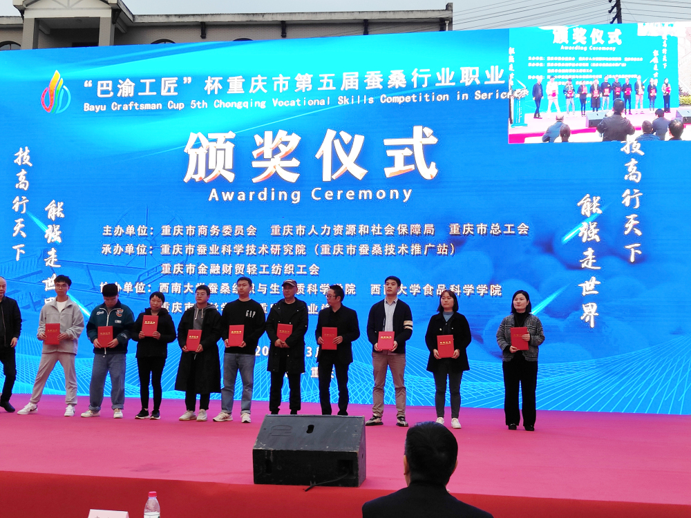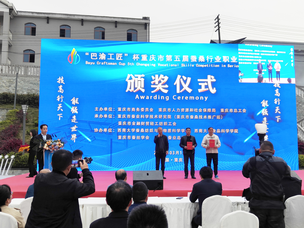 2023年3月14-15日,由重庆市商务委员会、重庆市人力资源和社会保障局、重庆市总工会主办,重庆市蚕业科学技术研究院、重庆市金融财贸轻工纺织工会承办的“巴渝工匠”杯重庆市第五届蚕桑行业职业技能竞赛在重庆市蚕业科学技术研究院举行,我院派出蚕桑所5名科技人员参加竞赛。