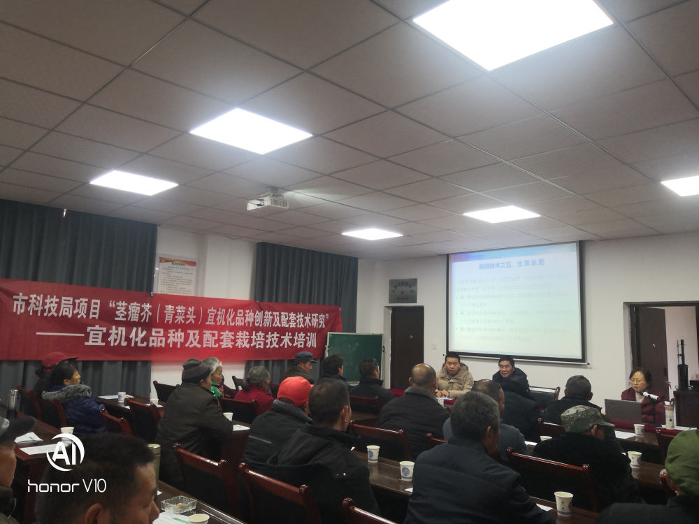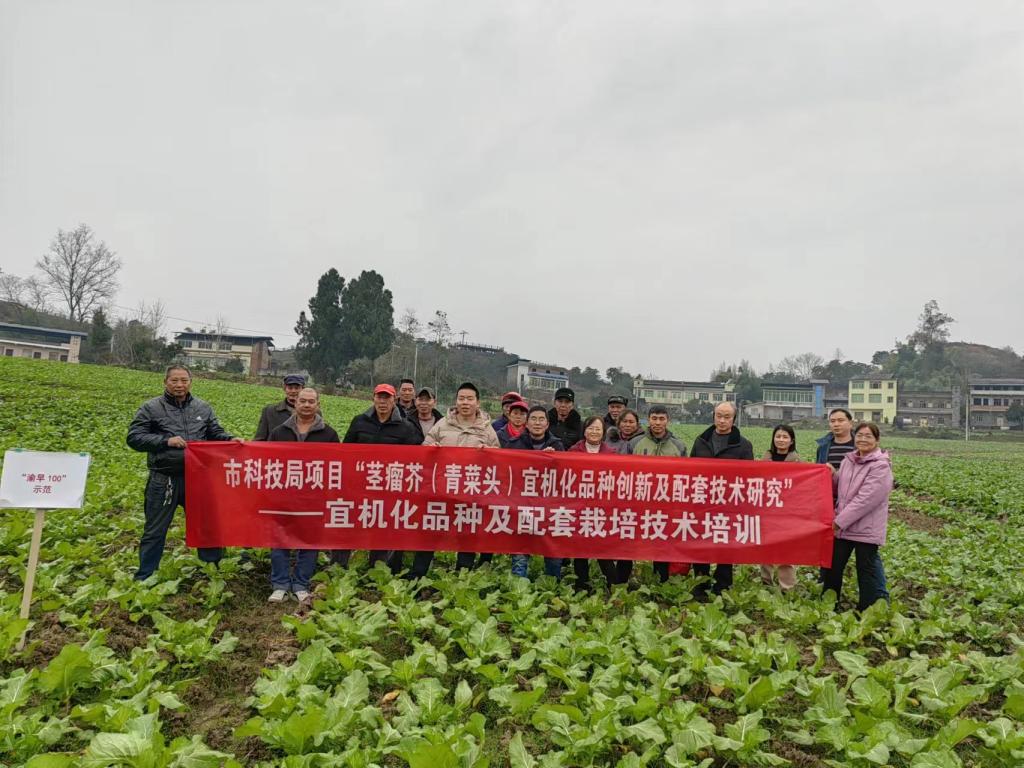 2024年1月5日,隆冬时节,重庆三峡学院重庆三峡农业科学院蔬菜团队正忙着送技术进村。依托重庆市科技局“茎瘤芥(青菜头)宜机化品种创新及配套技术研究”和重庆市农委“ 重庆市现代农业产业技术体系榨菜创新团队-万州综合试验站 ”项目,“宜机化品种及配套栽培技术培训”在梁平区金带镇石燕村举行,梁平区农业农村委经济作物发展中心会同组织培训会,共计43名榨菜种植和示范户参加培训,发放榨菜种植技术资料100份。
