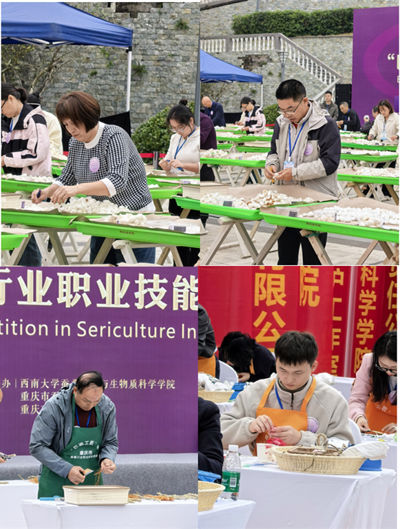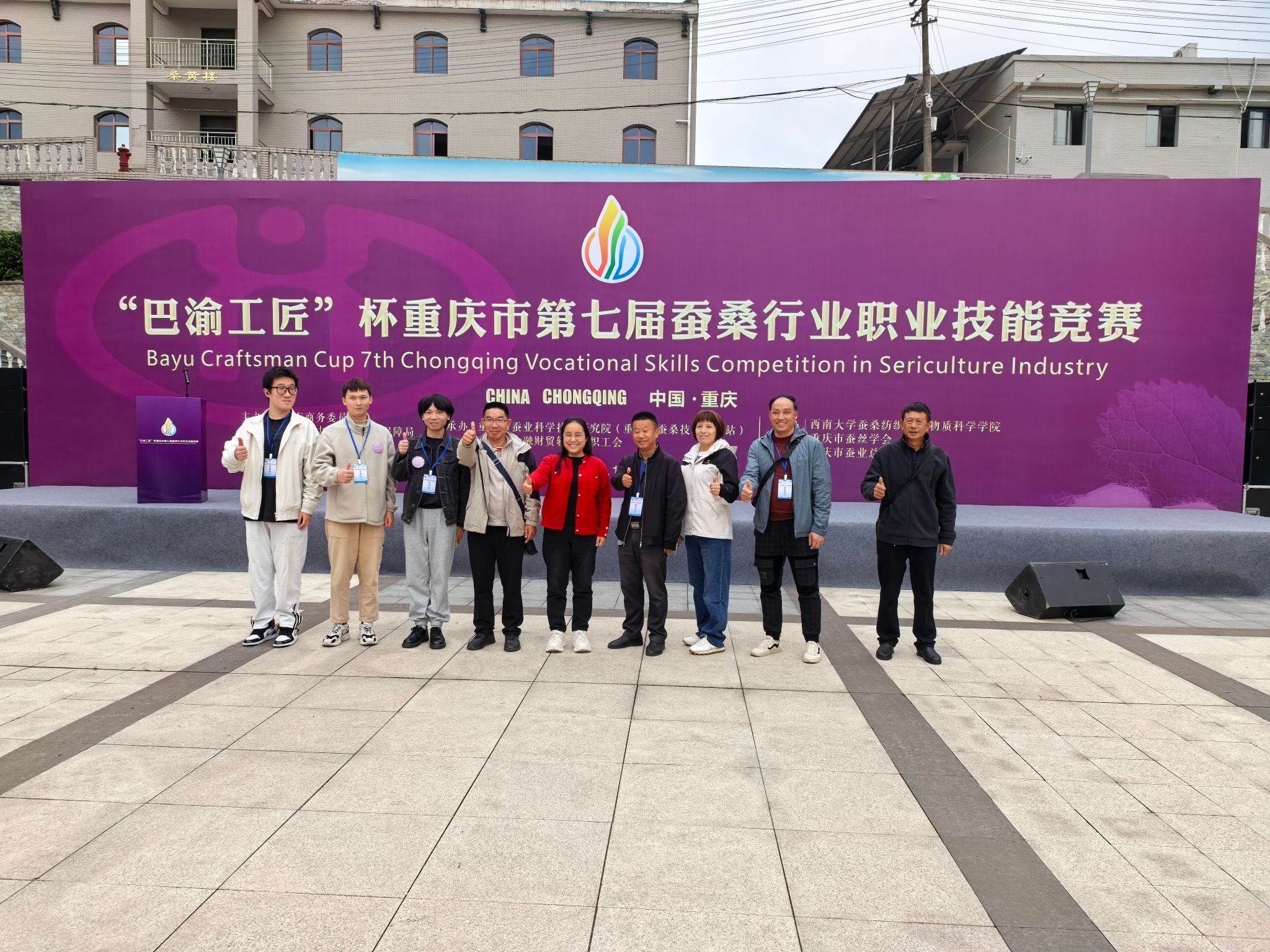 2025年10月30日至31日,由重庆市商务委员会、重庆市人力资源和社会保障局、重庆市总工会主办的“巴渝工匠”杯重庆市第七届蚕桑行业职业技能竞赛成功举行。我院选派蚕桑研究所4名科技工作者与3名学生组队参赛。经过激烈角逐,我院代表队表现优异,共获二等奖两项、优胜奖两项,其中,学生选手龚建强获得优胜奖;同时,我院荣获“优秀组织奖”。本次竞赛既彰显了我院在蚕桑领域的深厚积淀与综合实力,亦生动诠释了我院科技工作者坚守初心、精益求精的工匠精神。