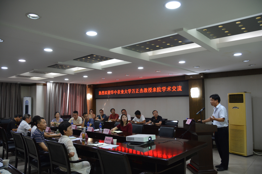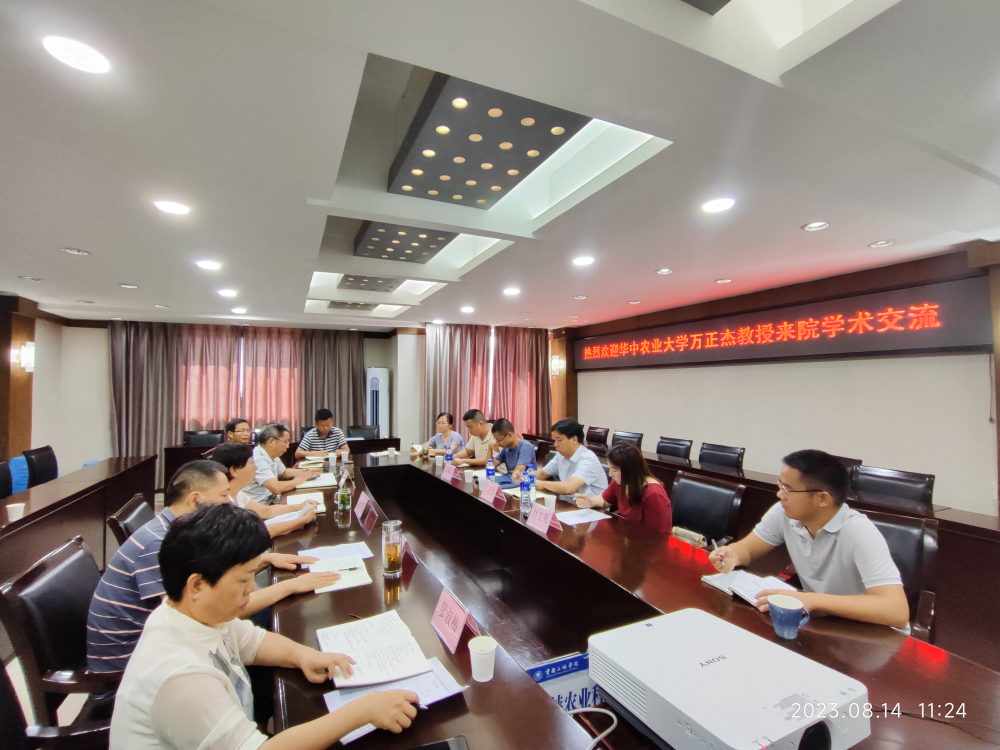 为进一步提升科技创新水平,浓厚学术氛围,提高作物育种水平,拓宽研究领域,8月14日,betway西汉姆联邀请国家特色蔬菜产业技术体系岗位科学家、华中农业大学万正杰教授来院考察指导,举办学术报告会和必威西汉姆联官网座谈会。院党委书记、院长杨梅及班子其他成员、相关科研团队等20多人参会。