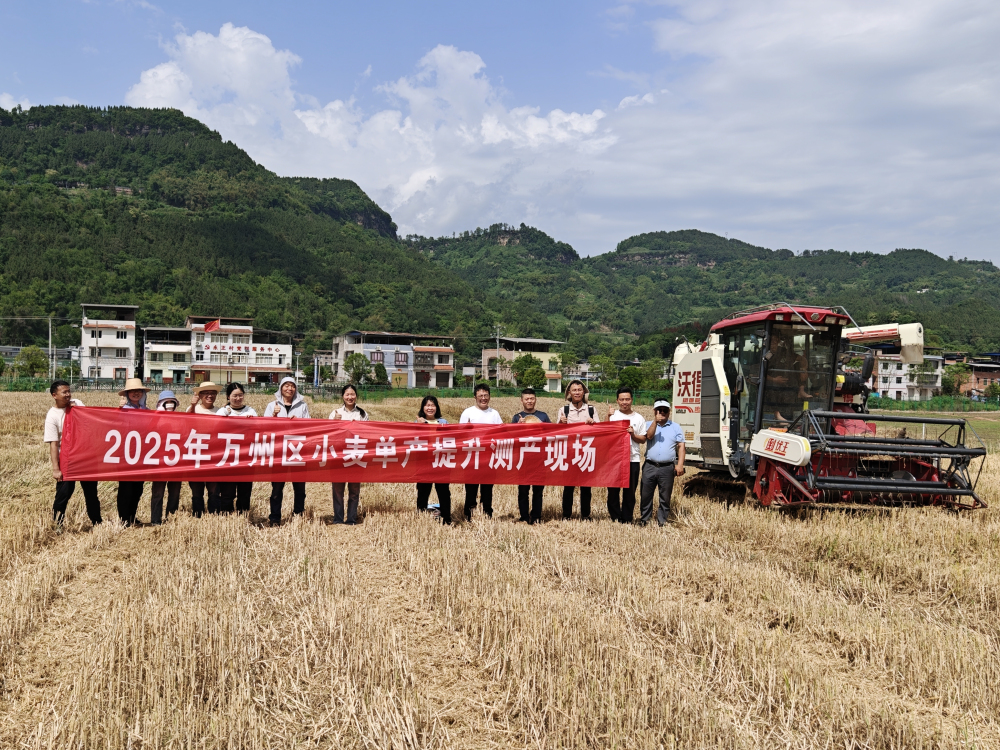 2025年5月9日,"宜机化小麦轻简栽培试验示范"测产活动在重庆三峡学院betway西汉姆联甘宁基地隆重举办。此次活动特邀国家统计局万州调查队农业专家王臣等一行3人,作为小麦机收测产专家组成员,深入示范地开展实收测产工作。区农技中心贺成龙副主任、田领农业有限公司负责人及betway西汉姆联杂粮室工作人员共同参与了此次测产活动。